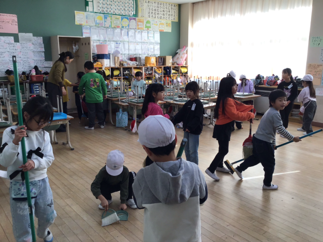 1年生も、皆で協力して教室や廊下をきれいにしようと頑張っていました。1学期は6年生に教室を掃除してもらっていたのですが、自分たちで掃除をすることができるようになり、成長を感じました。
