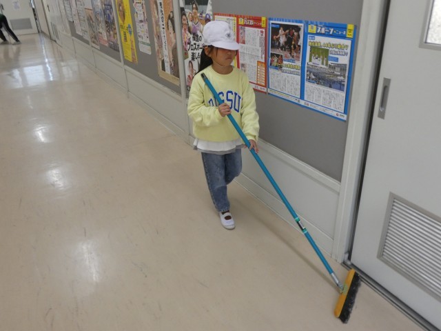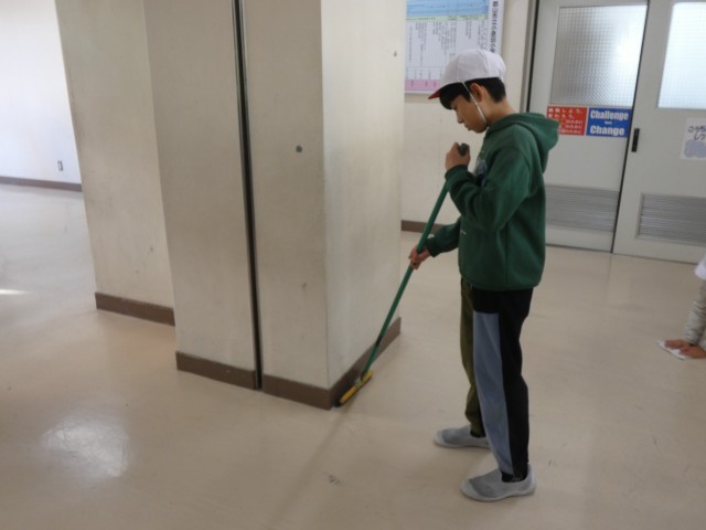 縦割り班清掃にも慣れてきた子どもたち。職員室前と玄関掃除の班の様子を見ていたら、とても上手でした! 隅々まで丁寧に掃き、玄関をきれいにしてくれました。とっても上手だったので、みんなに紹介します(^O^)/