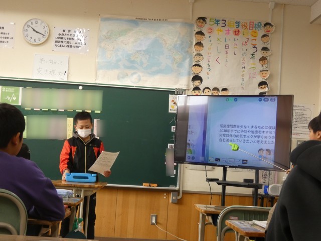 総合の学習で、郡山市の未来や、自分たちの将来の姿を考えた5年生。そこで、「未来をつくる私たち」として、学習したことを発表しました。