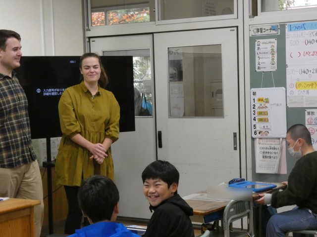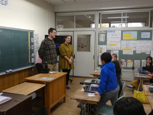 今日は、ニック先生のfamilyも学校に来て、外国語の授業に参加してくださいました。sisterさんは、アメリカの郵便局の方がトレーニングするジムに勤めているとのこと。ニック先生のfamilyに、子どもたちはいろいろなことを英語で質問しました。