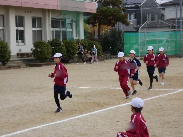 秋風の吹く中、4年生の子どもたちは全力で走り、自分の力を出した持久走記録会になりました。持久走記録会の様子を写真でお伝えします。