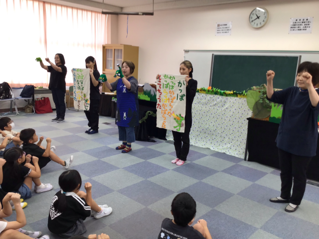 9月26日(金)に、「お話会」がありました。いろいろな手遊び歌を一緒に歌って楽しむことができました。子供たちが知っている「ぐりとぐら」のお話になると、目をキラキラとさせて、「次はどうなるんだろう?」と、ワクワクした気持ちでお話劇を鑑賞することができました。とても楽しいひとときを過ごすことができました。