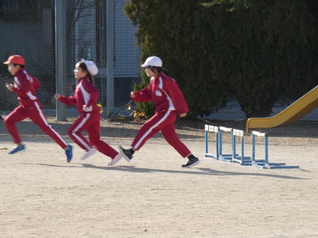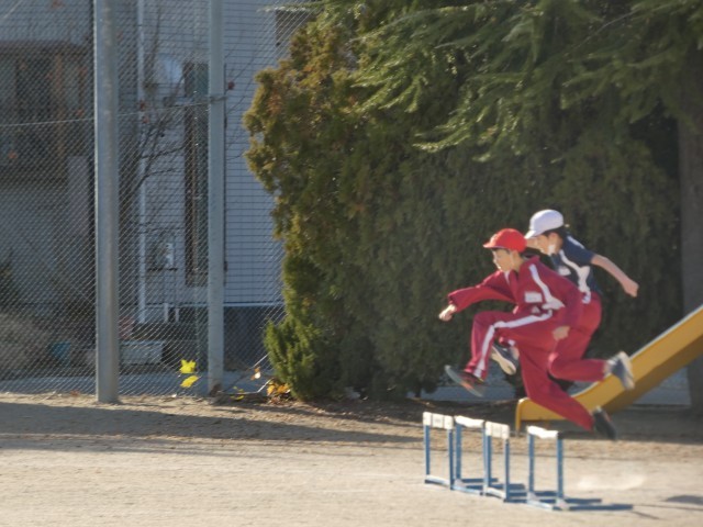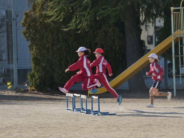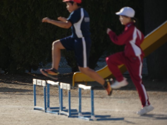 5年生が、ハードルの練習を始めました。真剣に走り、跳ぶ5年生。上手なハードリングのためには、跳び方のコツをつかむことが大切です。練習に頑張って取り組んでください。