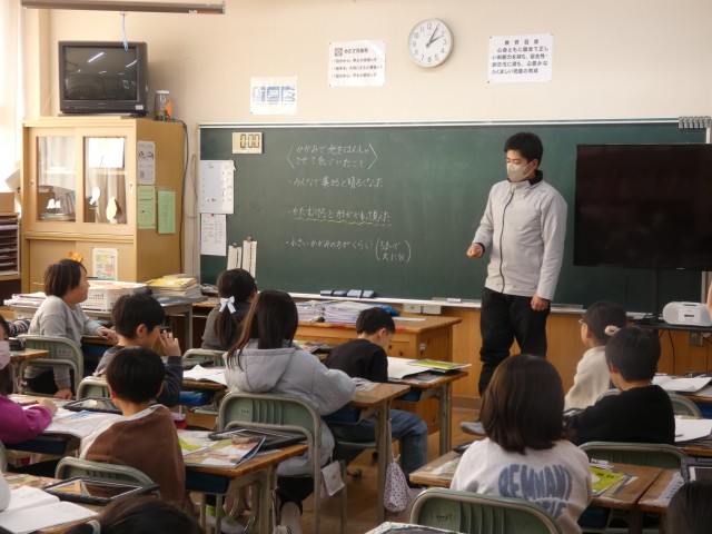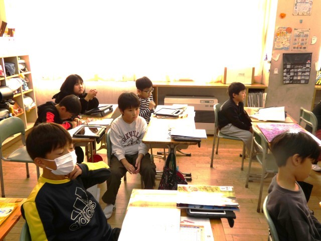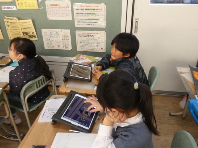 3年生は、理科で太陽の光を反射させたときのきまりを考えていました。一生懸命に考えを述べる姿、とっても成長を感じます!