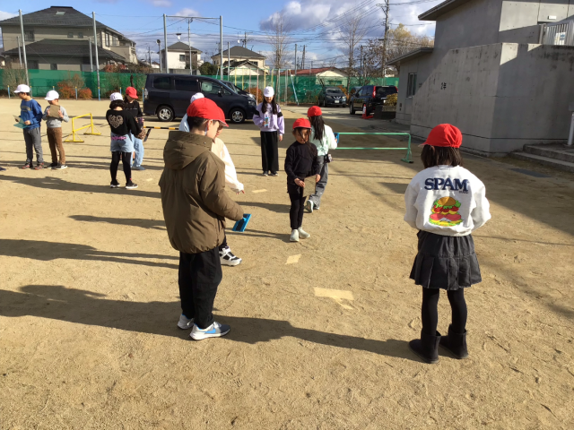 日光を鏡ではね返して、プールの壁に当てました。鏡ではね返した日光がまっすぐ進むことや、日光を重ねて集めるとさらに明るくなることに気づきました。基本的なことが分かったところで、日光を使って自分で遊びを考えていました。3人で日光リレーをしたり、日光を使って日光鬼ごっこをしたりしていました。子どもは遊びの天才です。