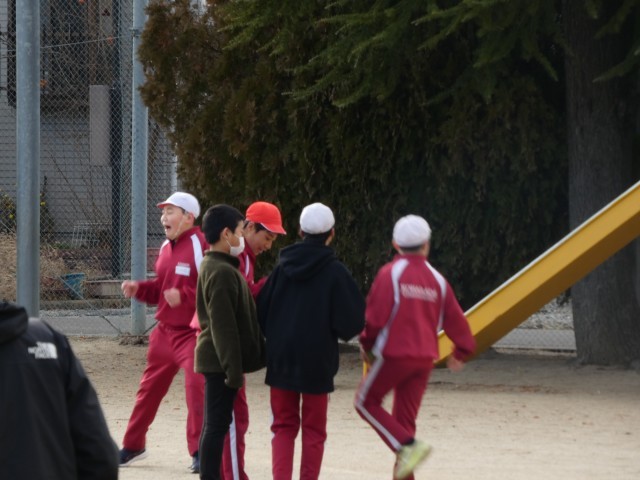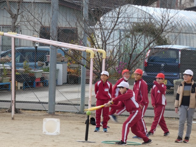 6年生の元気に驚きました! 校庭で、元気な声を出して、楽しそうにティーボールをする6年生。卒業式まで、あと54日間、小原田小で思いっきり楽しんでくださいね。