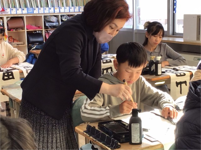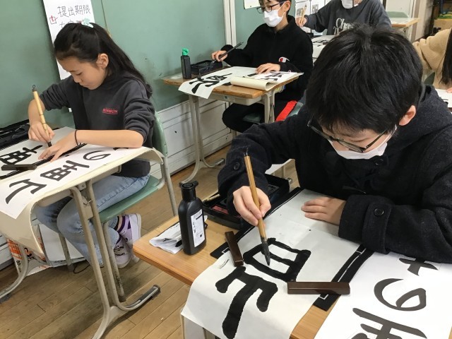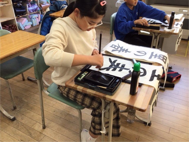 一文字ずつ書き方を丁寧に教えていただき、集中して書くことができました。大事なポイントを確認していただいたことで、冬休みの書きぞめもがんばれそうと話す子どもたちが多くいました。集中して書きぞめをする姿が素晴らしかったです。