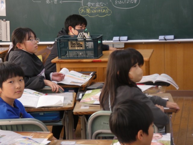 糸電話の仕組みを考えていた3年生。3年生の学習は、1・2年に比べて科学的な見方が必要とされます。真剣に仕組みを考える姿が素敵でした。