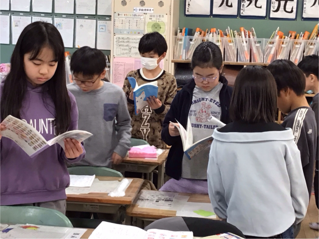 3年生から本格的に始まった自主学習。すっかり慣れ、わくわく自学、こつこつ自学とそれぞれのテーマで頑張っています。頑張っている自主学習のノートをみんなで見せあいました。自分がチャレンジしなかったことに取り組んでいるノートや、丁寧に取り組んだノート、苦手なことに取り組んでいるノート、好きな分野をとことんやっているノート、どのノートもとてもすてきでした。これからも、自分でめあてを決め、どのように学ぶかを考えて1ページにまとめていくことで、「自分で学ぶ力」をつけていってほしいと思います。