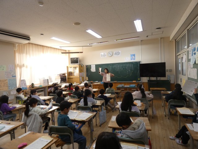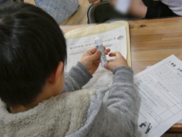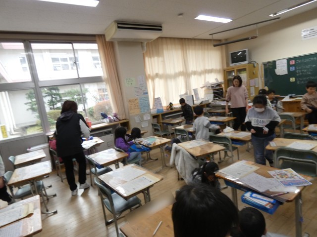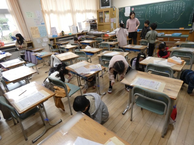 1年生は、小学校で初めての冬休みを迎えます。そこで、教室のごみを拾ったり、お道具箱の中の片づけをしたりしました。
