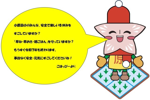 今年もあと少しですよ。早ね・早起き・朝ごはんを守って、安全で楽しく生活してくださいね。