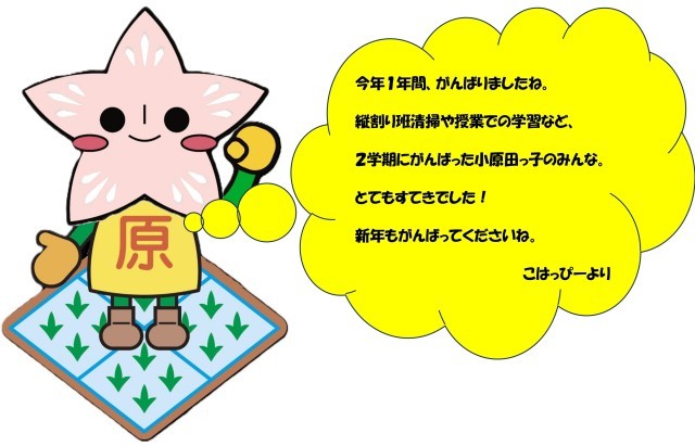 今日で令和7年が終わりです。あっという間の1年間でした。令和7年、小原田っ子のみんなのたくさんのがんばりを見ることができて、うれしかったです。特に縦割り班清掃は、すばらしかったです。さようなら令和7年、ありがとう令和7年。