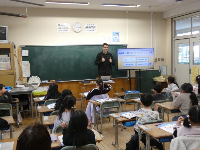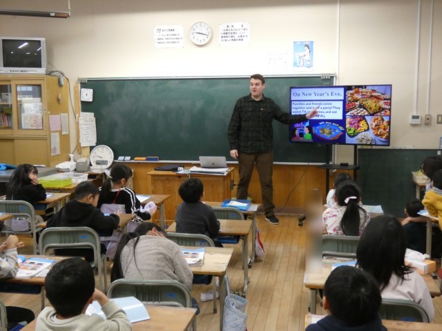 今日は、AETのニック先生と英語表現科の授業を行いました。色の言い方を確かめたり、アメリカのお正月の過ごし方を英語で確かめたりしました。ニック先生と楽しく英語を学習しました。