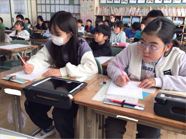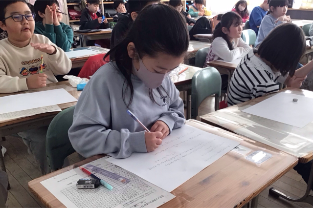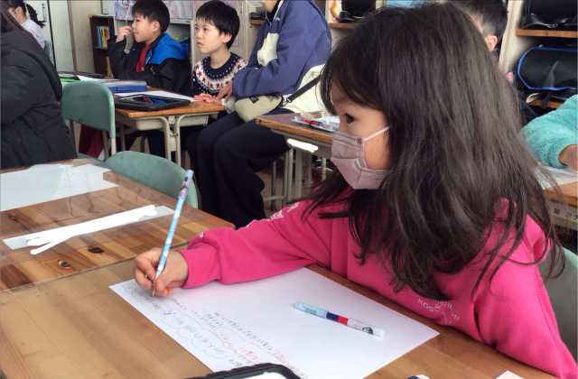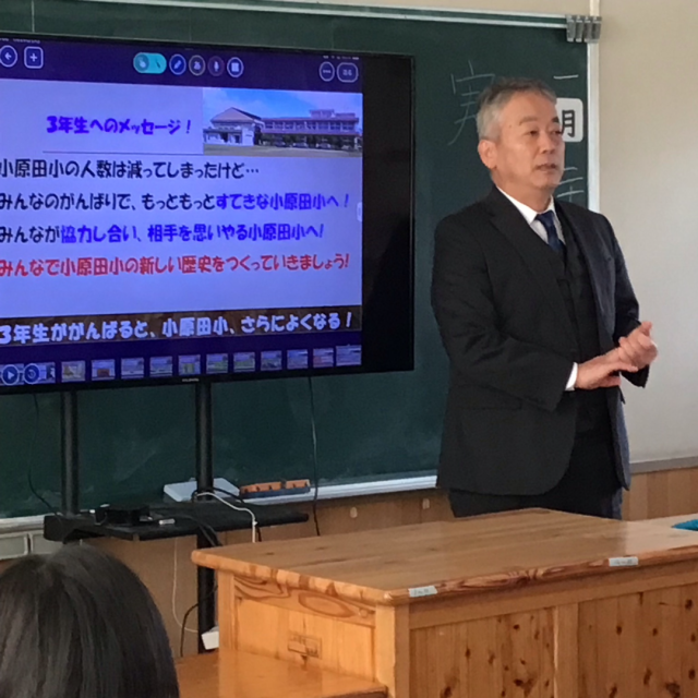 校長先生のお話を聞いて真剣にメモを取る姿が素晴らしいですね。一言も聞き漏らさないように、と気合を入れてメモをする子や、図にして分かりやすくメモをする子など、それぞれの工夫に感心しました。校長先生に教えていただいたことや、資料などを通して、自分たちでまとめ、最後には自分の考えを表現していきます。校長先生が、今日の学びの最後に「3年生へのメッセージ」を話してくださいました。子どもたちの心にきっと届いたことだと思います。一人一人すてきに成長して、すてきな小原田小学校を作っていきましょう。
