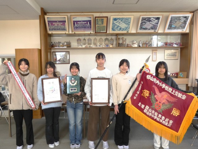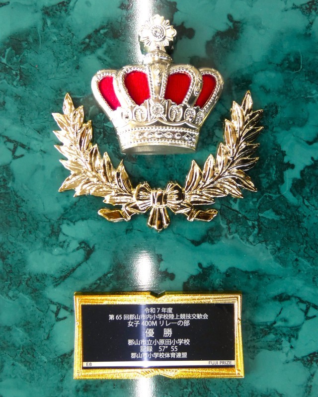 市陸上競技交歓会女子4×100mリレーでの優勝盾が届きました! 今までは、次の年の市陸上競技交歓会の中でいただいていましたが、行事内容の精選を行い、開会式の中での優勝旗返還がなくなりました。それに伴って、優勝盾をいつもより早めて、決勝を走りぬいた6年生が在籍しているうちに優勝盾を渡そうと配慮いただき、先日、学校に届きました。