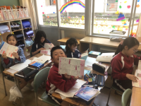 友達の演奏に合わせて「七、七、八・・・」と、はじく糸の番号を教えてあげていた子ども達。箏の音色もとっても優しい響きでした。