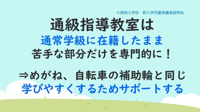 それが、通常学級、特別支援学級、通級指導教室です。このように様々な学びの場を準備することで、子供が安心して学び、成長できるように支援していきます。
