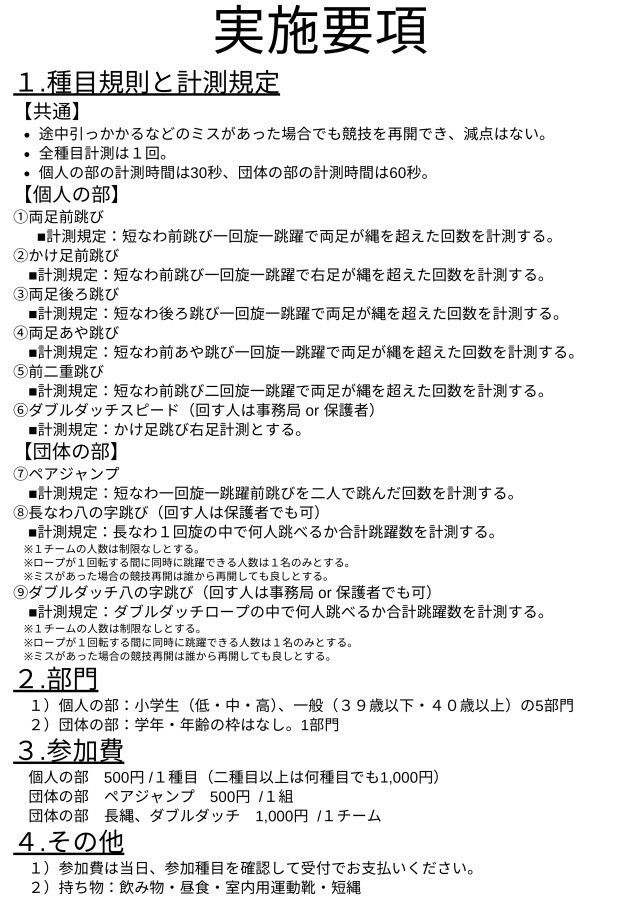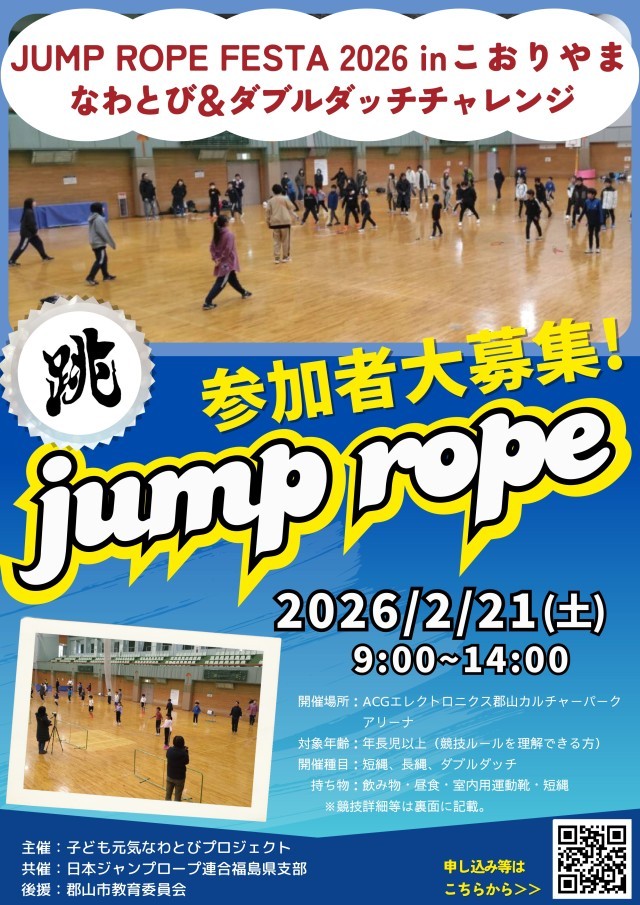 ジャンプロープフェスタ2026が開催されます。興味のある方は、各自お申し込みください。