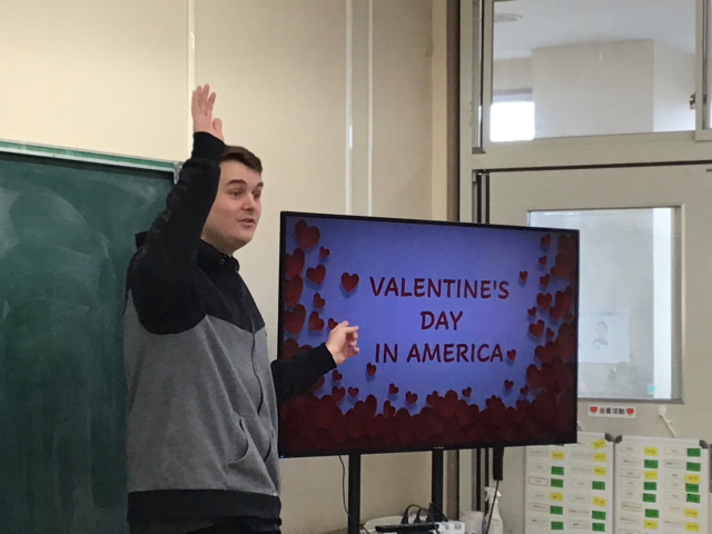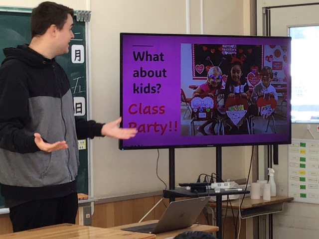 今日の外国語科の学習は、アメリカの文化を教えていただきました。「バレンタインデイ」
