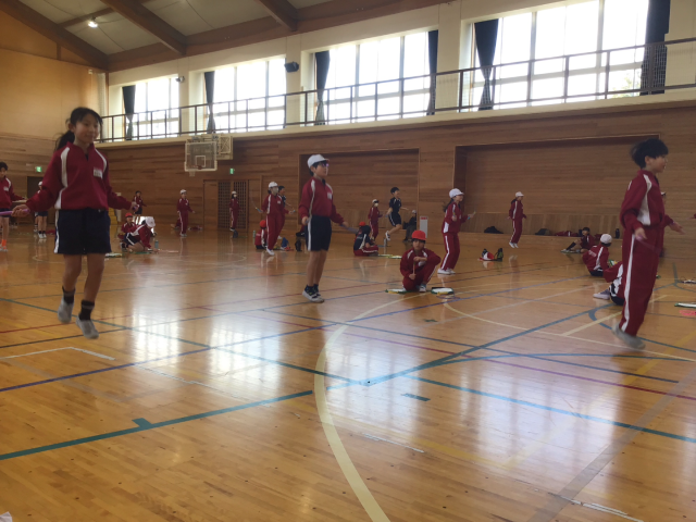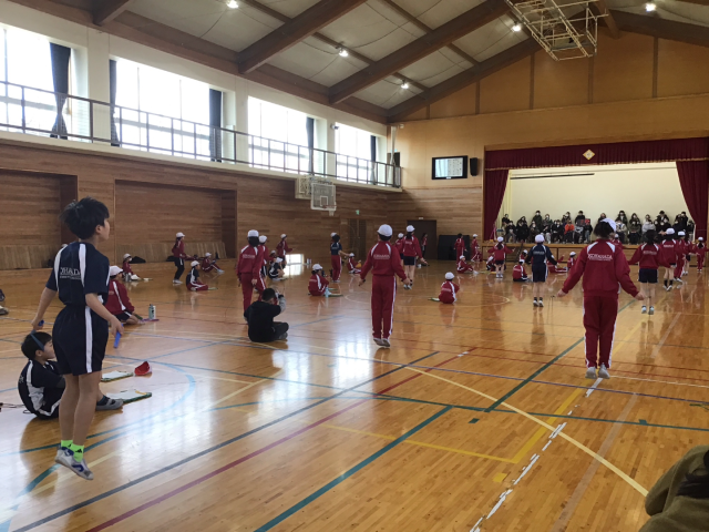 4年生の縄跳び記録会を行いました。朝から気合十分の子ども達。準備運動もいつもより力が入っていました。