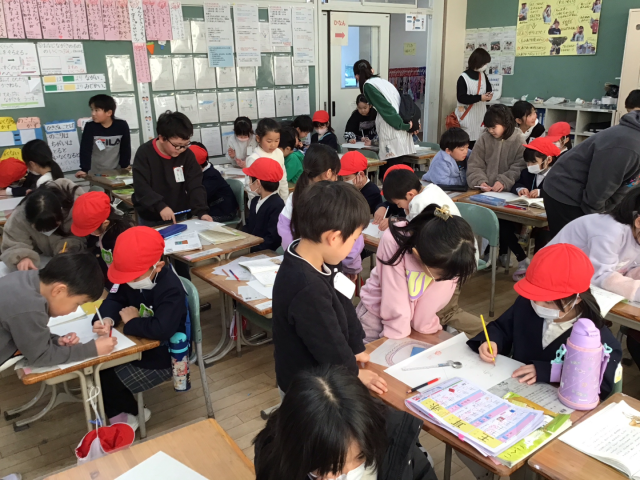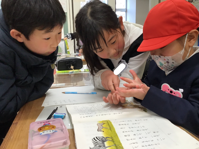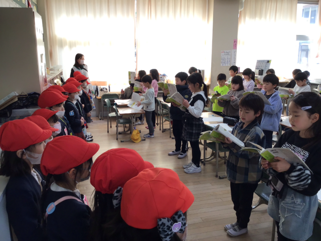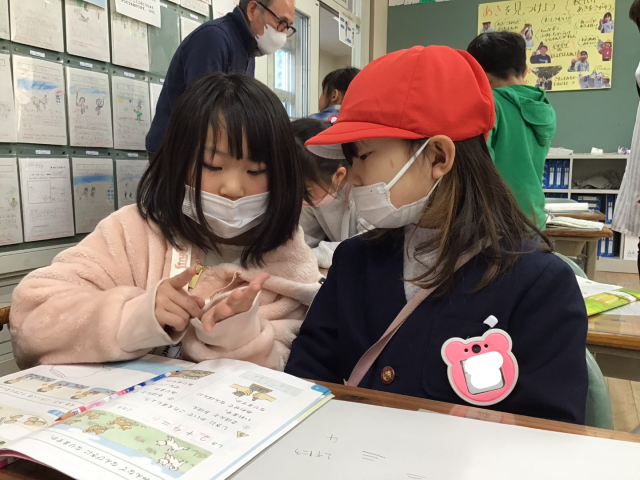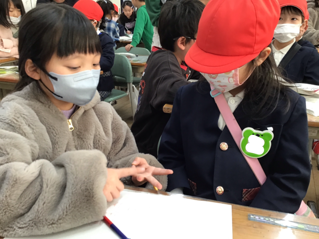 1年2組では音読発表をしたり、1年生の学習を教えてあげたりしました。1年生は、あけぼの幼稚園のみなさんを迎えるために、とても張り切っていました!