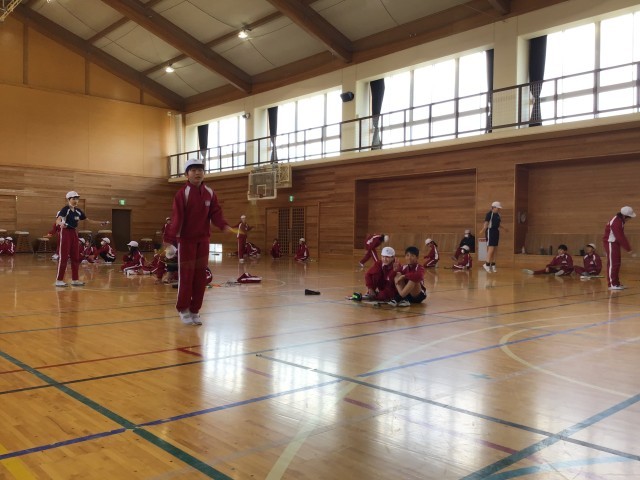 今までの練習の成果を出そうと集中して跳ぶことができた持久跳び、たくさんの合格者が出ました。種目跳びでは自己ベストを出す子供たちが大勢いました。互いに応援し合いながら、一生懸命跳ぶことができました。