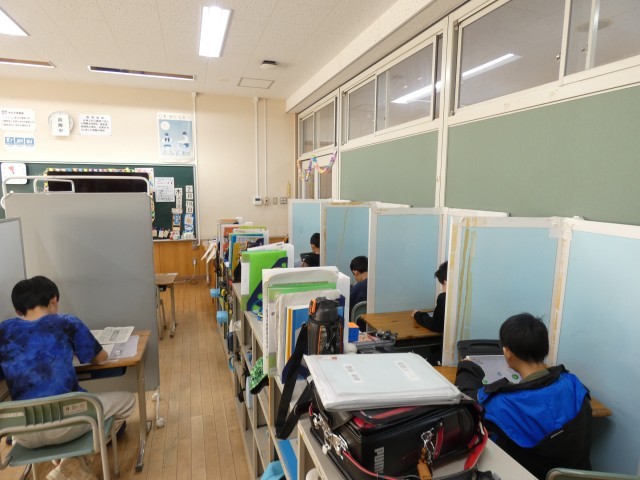 落ち着いて学習するわか・たんの子供たち。少人数学級のよさを生かし、パーテーションを使ったり、個別指導を行ったりしています。