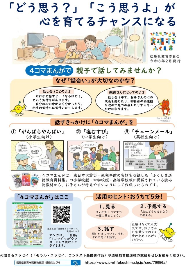 「4コマまんがで親子で話してみませんか?」の資料が届きました。ぜひご覧ください。