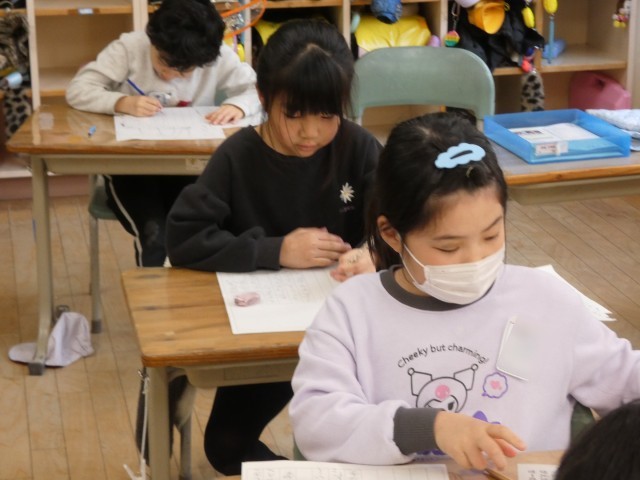 1年生は、作文の学習に取り組んでいました。この1年間で、長い文章も書けるようになってきています。1年生の成長は、本当にすごいです(^O^)/