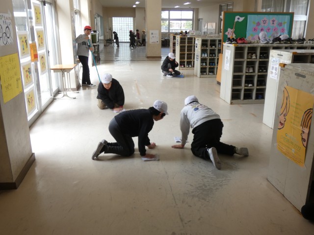 今日は、小原田小の全員で、校舎をきれいにしました。大掃除です!