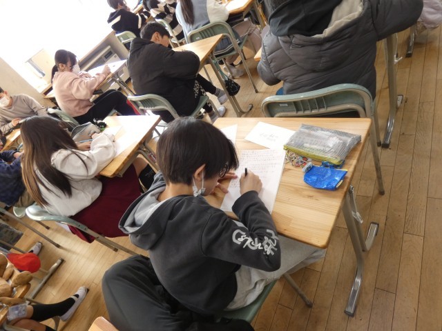 手紙を書いていた6年生。来週の今日は、もう卒業しているんだなと思うと・・・。残りの時間を大切にしていきましょうね。