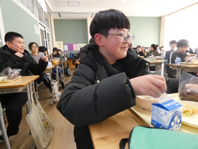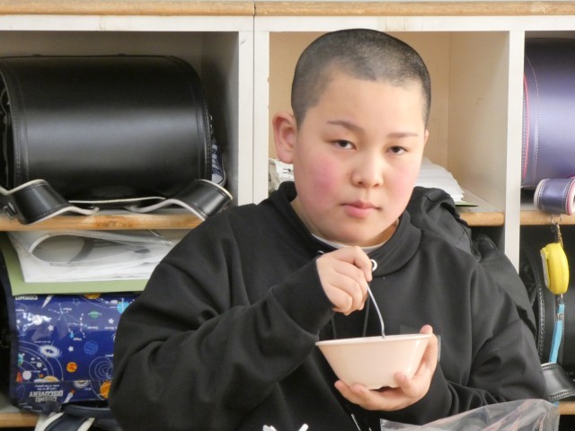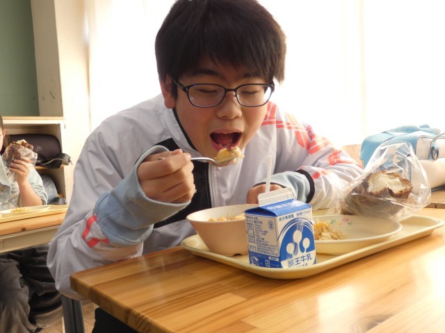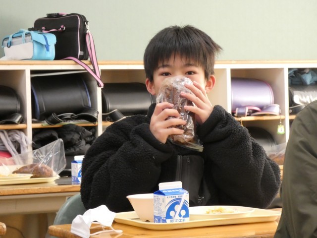今日は、本年度最後の給食の日。6年生にとっては、小学校最後の給食の日です。給食をおいしく、元気に食べる6年生。中学校でも、給食を食べて元気に成長してください。