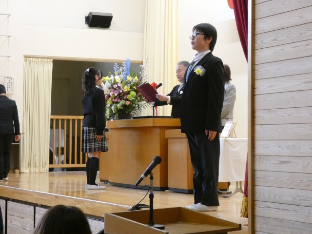 卒業生のみなさん、これからも有意義な時間を重ね、将来、私たちの地域この小原田を、そして、私たちの住むこの日本を支える立派な大人へと成長していくことを心から願っています。