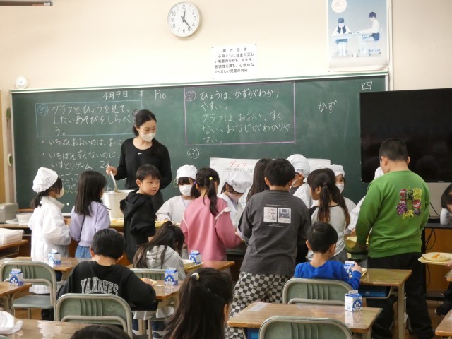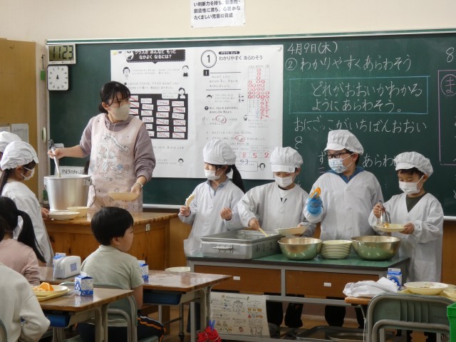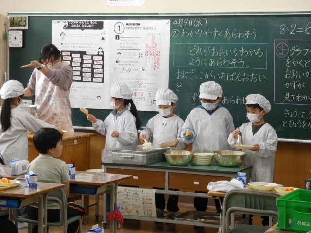 2年生の給食当番の様子