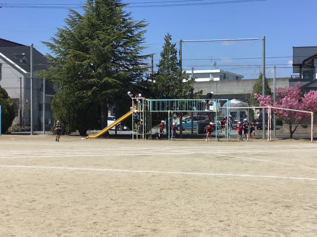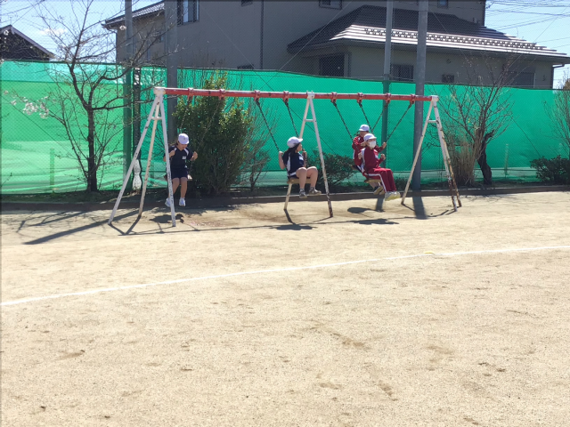 ブランコを思いっきりこいだり、竜宮城で遊んだり、砂にお絵描きしたりと、とっても楽しそうでした。やっぱり学校は楽しいですね。