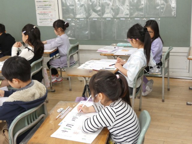 真剣に文字を書く2年生!