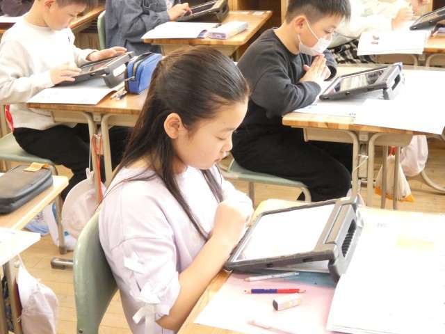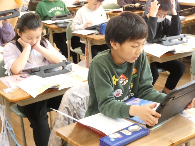 4年生は、国語科の時間に物語文を読んで、調べたいことや疑問を見つけ出す学習に取り組んでいました。4年生、学習内容も一つレベルアップしています!