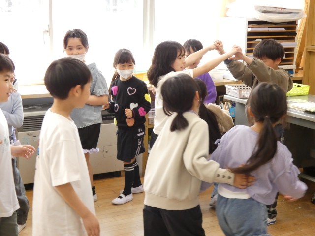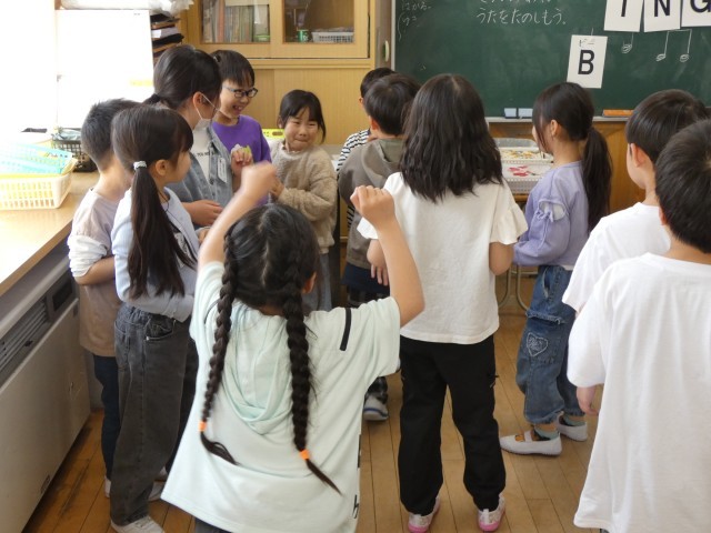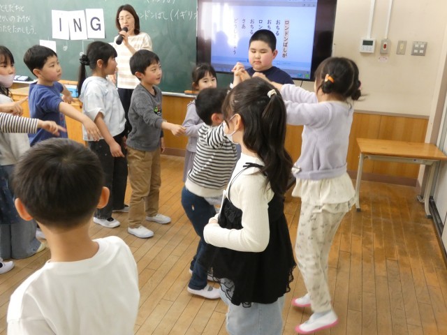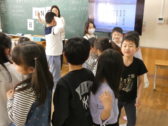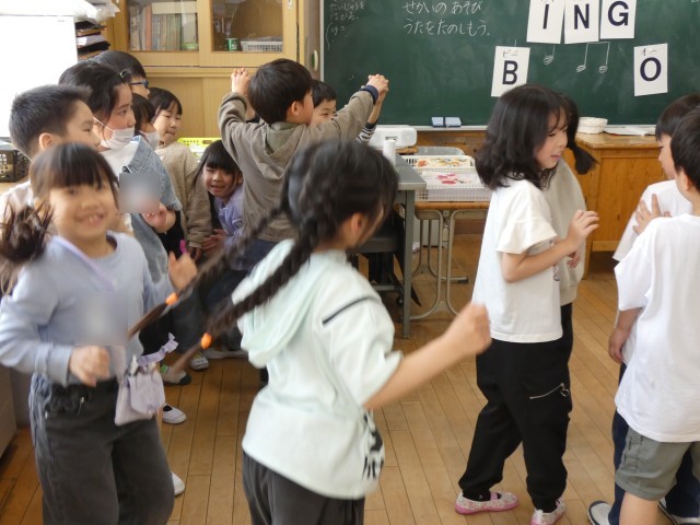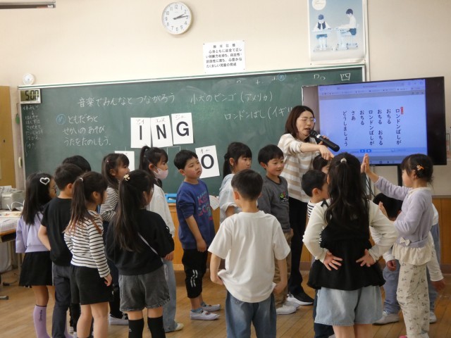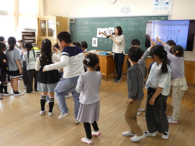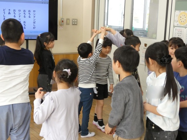 2年生の音楽科の時間の様子です。音楽でみんなとつながろうという学習の中で、世界の遊び歌を通し、世界の子供たちとつながりました! ロンドンばしはとても楽しかったようで、友達と楽しく活動しました(*^_^*)