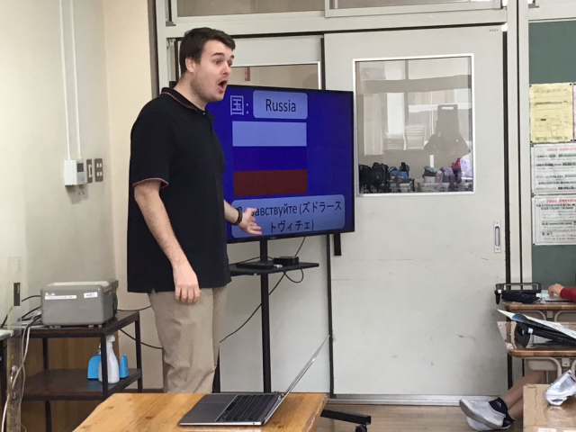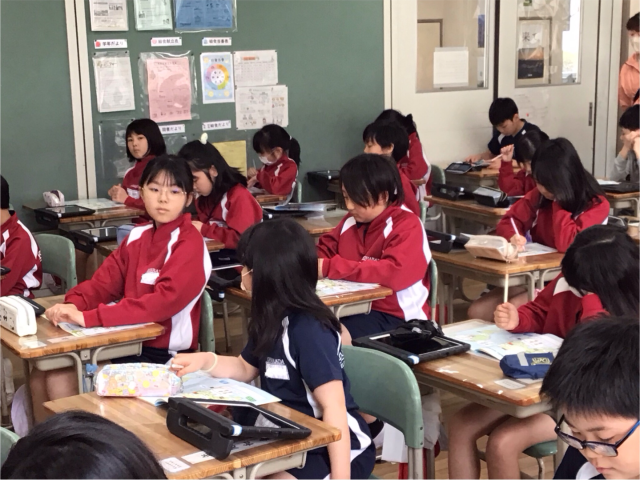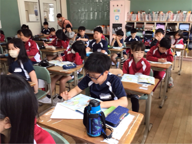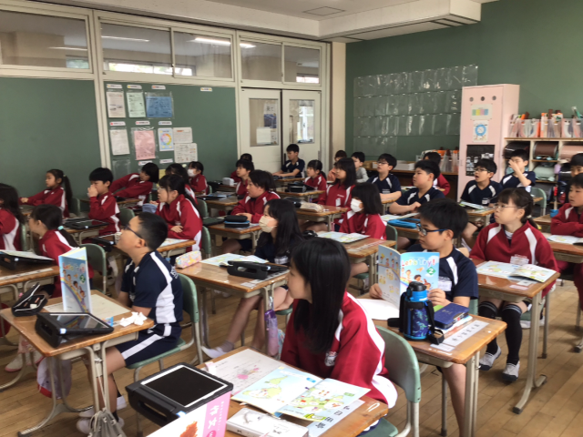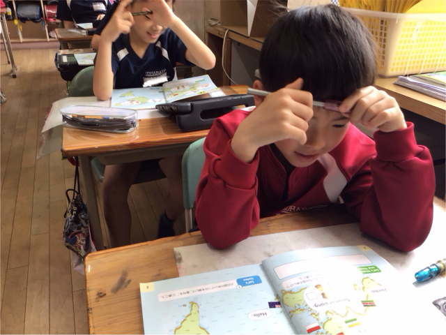 今年も外国語活動の学習が始まりました。世界の国のあいさつと、自己紹介、そして国の名前の学習をしました。次回は、学んだことをもとにタブレットを使ってクイズをするそうですよ。