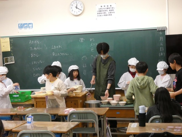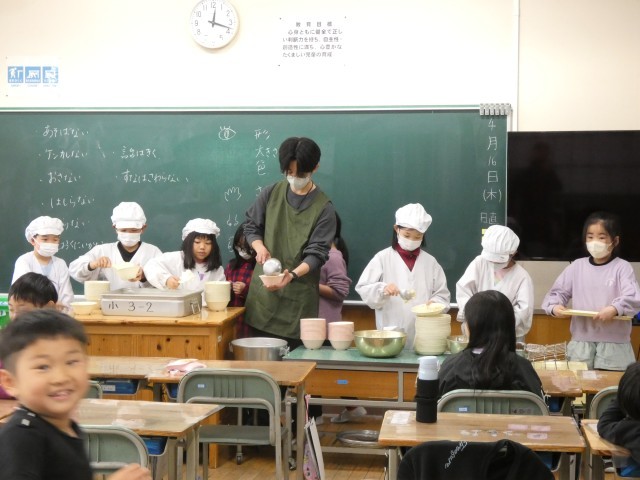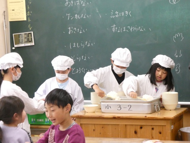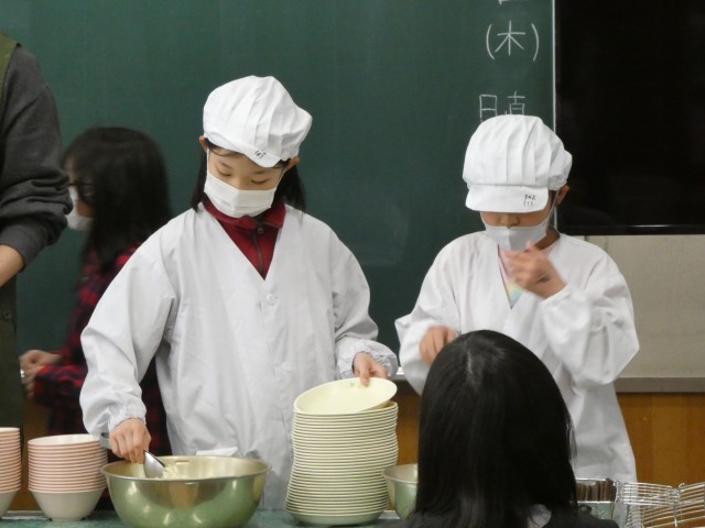 給食当番として、行くたびに上手になっている3年生。めざましい成長です!