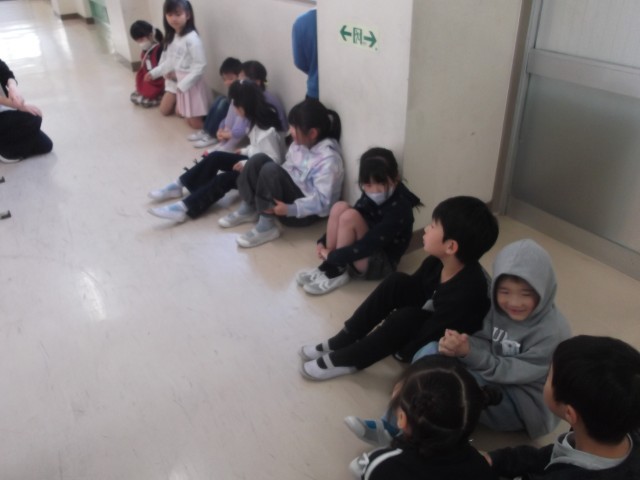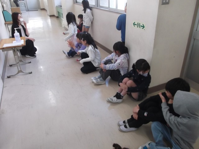 今日は聴力検査。そこで、2年生は、廊下で静かに待っていました。カッコいいぞ、2年生!
