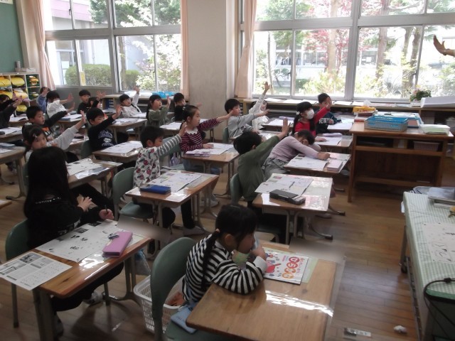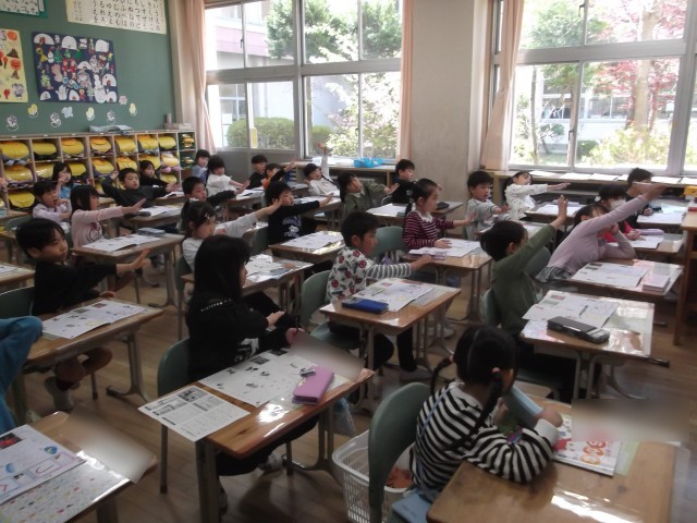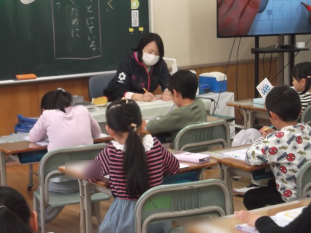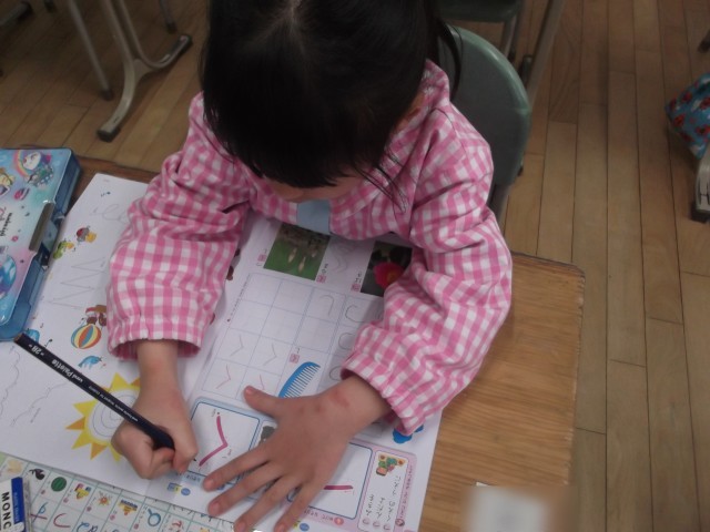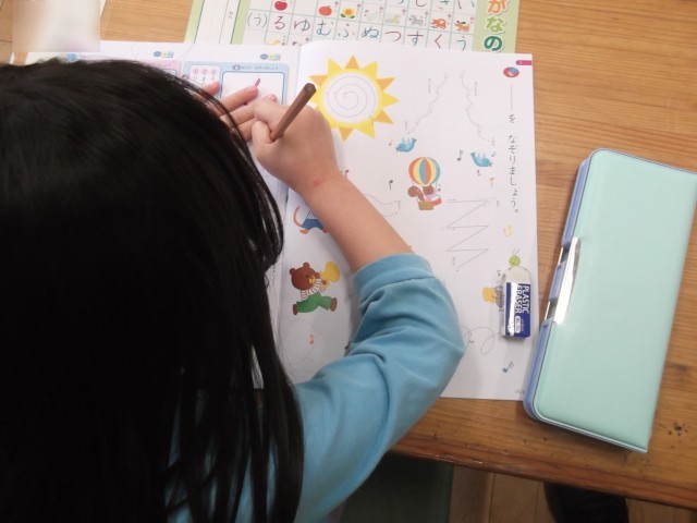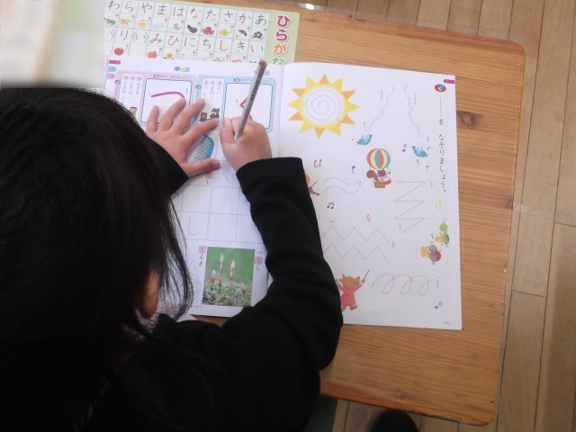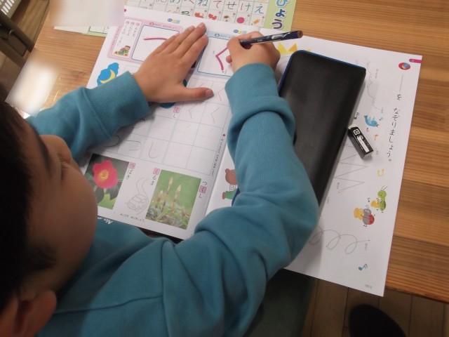 1年生、ていねいにひらがなを書いています(#^^#)