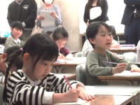 一画一画ていねいにひらがなを書いている1年生。真剣に書く姿がとっても素敵です(^<^)! これからもがんばってくださいね!