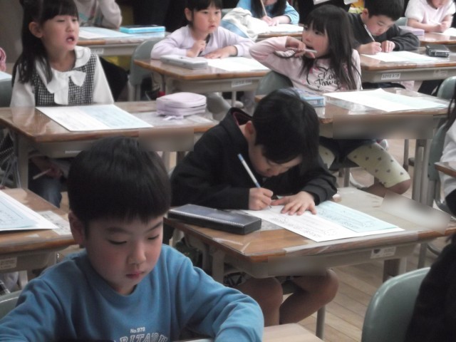 ひらがなを書いていた1年生。文字を丁寧に書くことは、学習の基本です! しっかりと正しい文字を書いて、覚えてくださいね(#^^#)