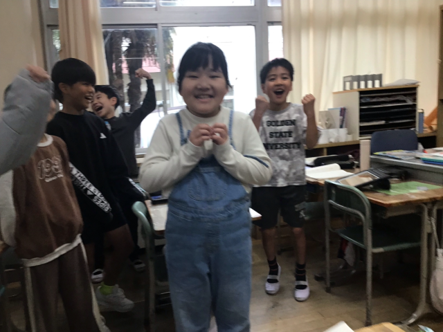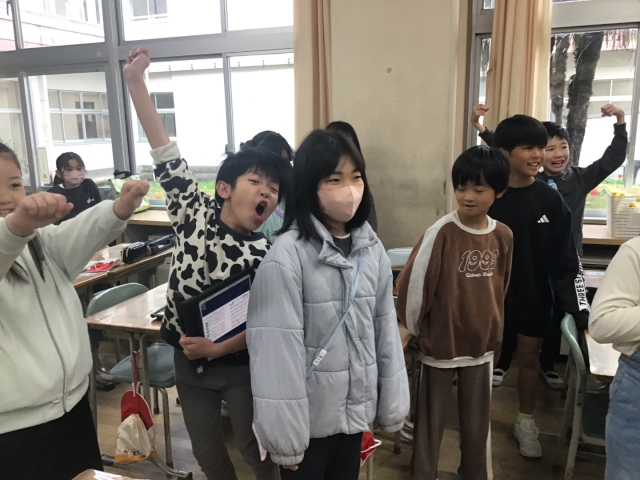 運動会に向けて朝から元気いっぱい「ゴーゴーゴー」の練習をしています。紅組も白組も元気いっぱいです。今日は、校長先生が教室に来てくださり、紅組白組の運動会の歌の判定をしてくださいました。どちらもとても上手でしたが勝負は勝負!