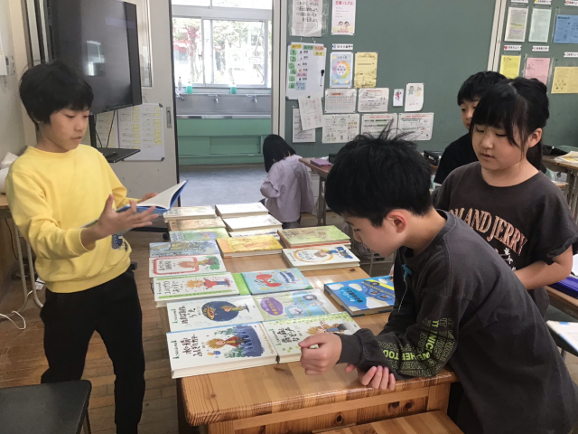 国語科で「白いぼうし」の学習をしています。今日は、「白いぼうし」のシリーズ本や、作者のあまんきみこさんの他の本、ふしぎなことが起きる本を読みました。白いぼうしで学んだことを広げながら、本を選んで読んでいました。元気いっぱいな4年生!校庭で元気いっぱい遊ぶ日も大切!でも、本は心を元気にしてくれますよ。じっくりと本と向き合う時間も作ってくださいね。