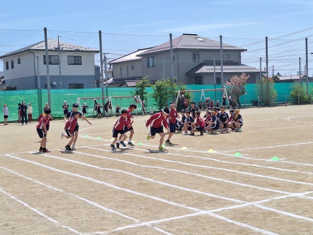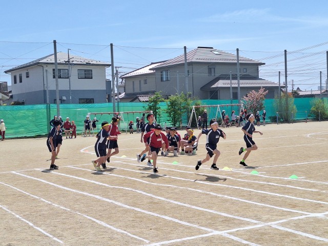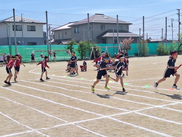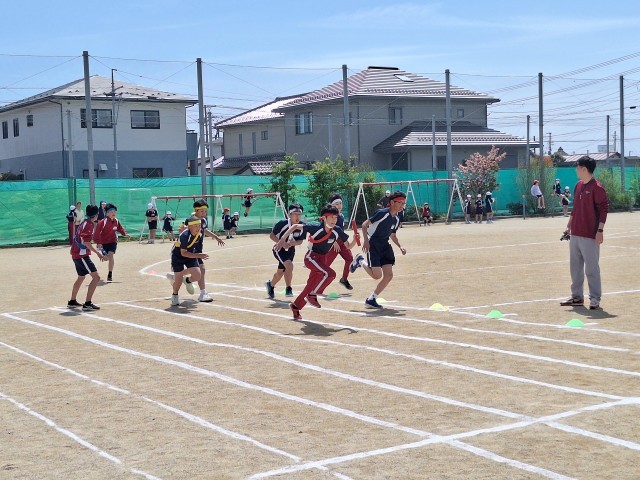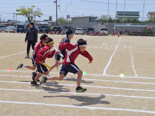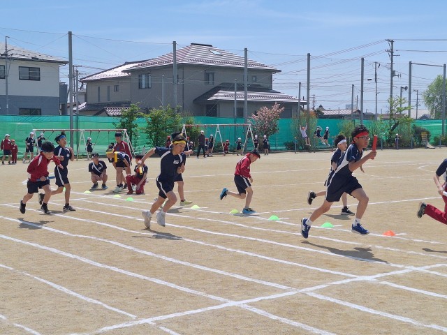 続いて、上学年男子リレーの練習の様子です。