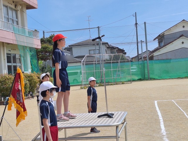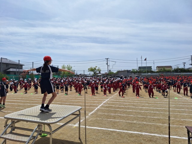 運動会の全体練習が始まりました! 今回は、開閉会式の練習です。6年生を中心に、子供たちが集中して取り組み、子供たちの「頑張り」を感じました。