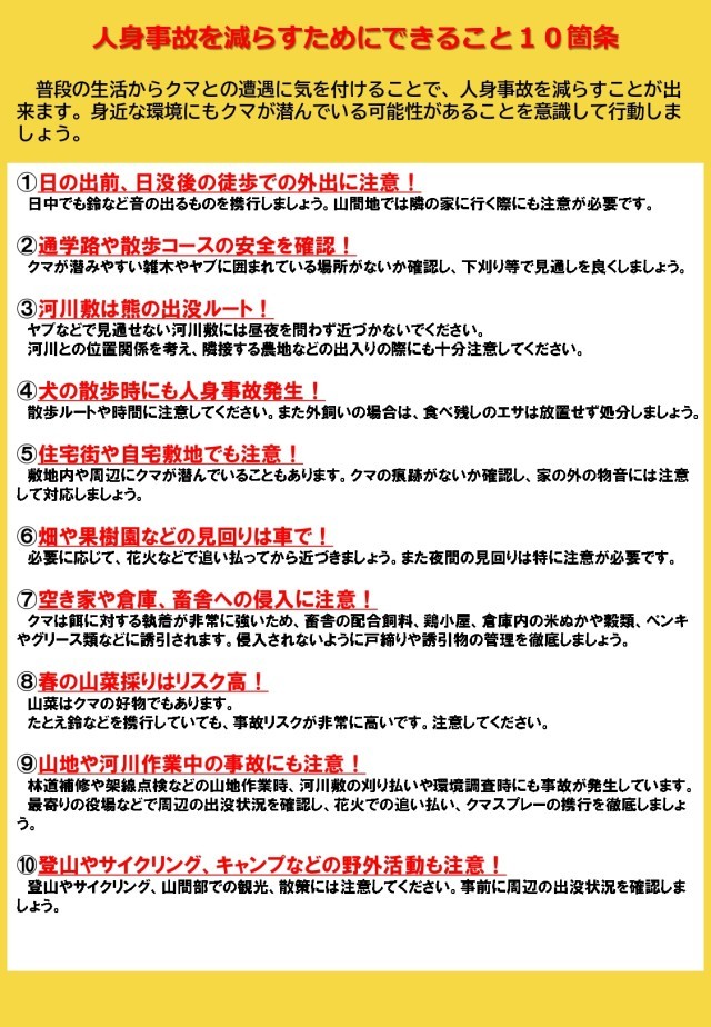連日、クマ出没のニュースが報道されています。内容を確認の上、十分に注意してください。