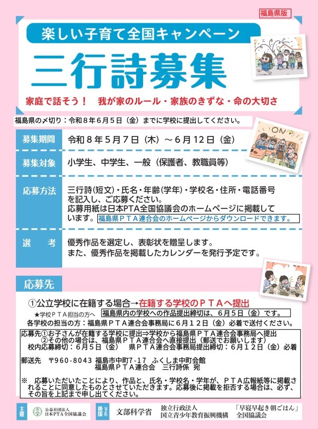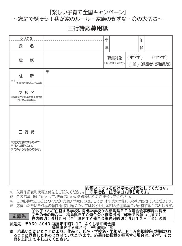 三行詩募集のお知らせが届きました。興味のある人は応募してください。